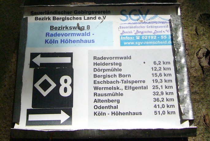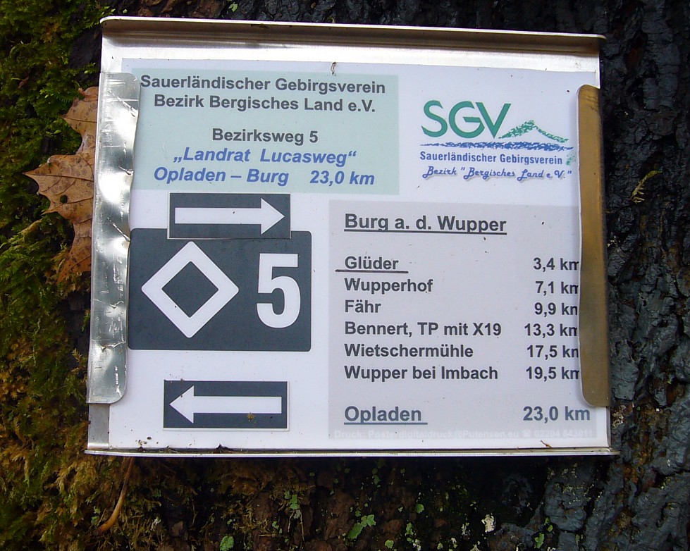 | Wupperweg | Raute 8 | Hugo-Kracht-Weg | Raute 11 | |||